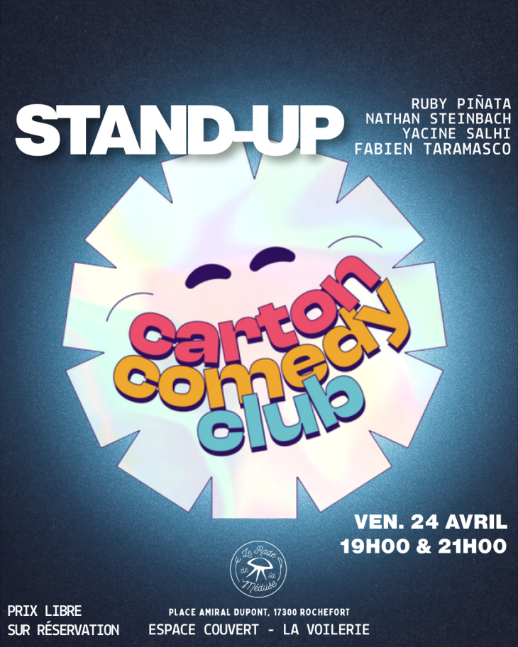 Ajouter à mon Calendrier 2026-04-24 00:00:00 2026-04-24 00:00:00 Carton Comedy Club - Stand Up Le Carton Comedy Club débarque au Rade de la Méduse ! Préparez-vous à une soirée 100 % stand-up avec 4 humoristes qui vont enflammer la scène : @ruby.pinata, @nathan_steinbach_, @yacinesalhi et @fabien.taram Au programme : des vannes, de l’impro, des univers variés et une ambiance survoltée dans un cadre unique ! - Deux sessions : 19h, puis 21h (avec une pause entre les deux) - Sur réservation via le compte du Carton Comedy Club (toutes les infos y sont disponibles) - Paiement libre Une chose est sûre : vous allez rire… beaucoup ! Rochefort Ville de Rochefort gaetanpat@gmail.com Europe/Paris public
