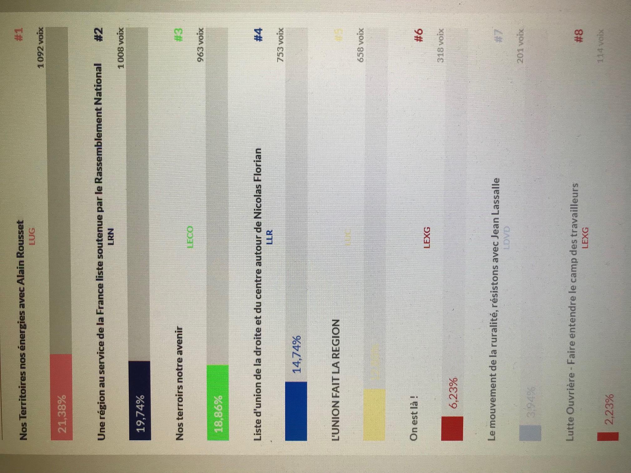 • Une région au service de la France liste soutenue par le Rassemblement National : 19,74%