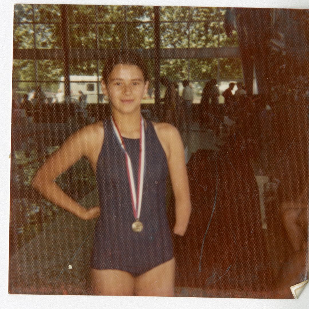 Elle intègre en 1973 la Fédération Natation Handicapés et participe aux Championnats de France Handisport, à Roanne. « À 10 ans 1/2 j'ai été championne de France du 100 mètres brasse ». À cette époque, les catégories handisport sont liées au handicap et non à l’âge, elle est donc Championne toutes catégories d’âge confondues ! « Ça a étonné beaucoup de monde car personne ne me connaissait ! Et j'avais gagné avec plus de 25 mètres d'avance ! C'est ma 1ère vraie médaille de championnat de France. Elle a beaucoup d'importance pour moi. »