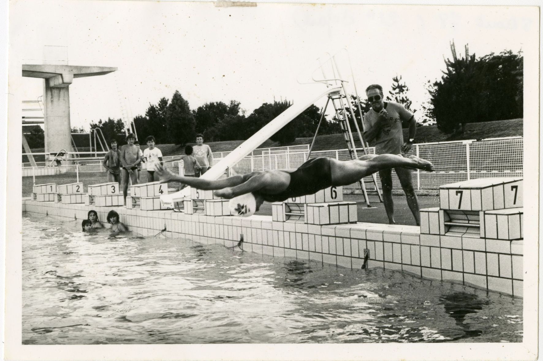 1978 : plongeon dans le bassin extérieur de la piscine de Rochefort