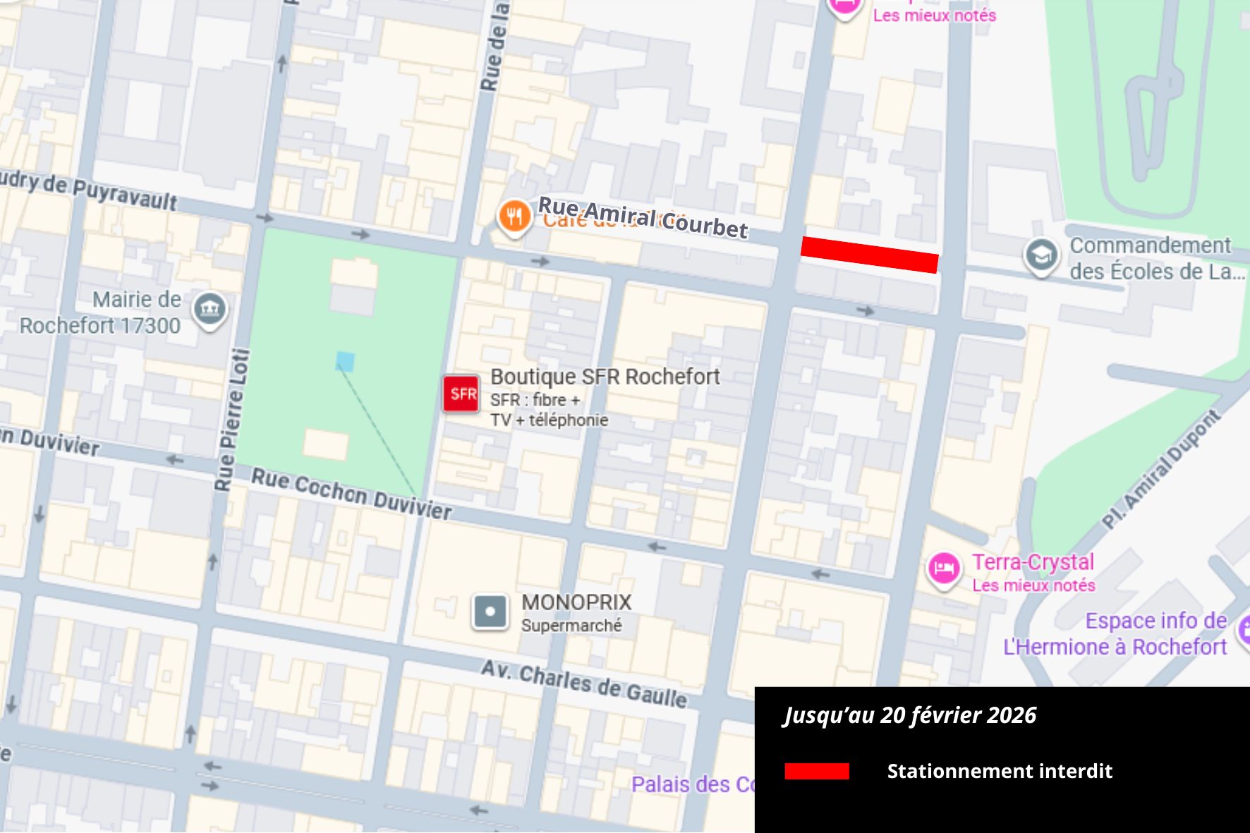 En vue d'un réaménagement globale de la voirie rue Amiral Courbet, une détection des réseaux d'eau par l'entreprise Eurovia se déroule jusqu'au 20 février 2026, entre la rue Jean Jaures et la rue Pierre Toufaire.