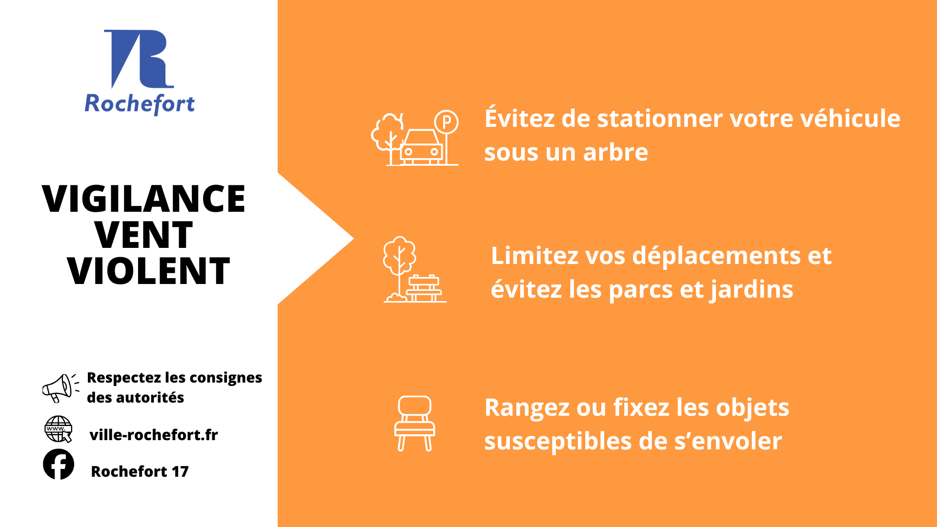Les fortes rafales de vent accompagnées d’épisodes pluvieux, peuvent fragiliser les arbres en bonne santé ou leur système racinaire. Par conséquent la ville vous invite à suivre les consignes spécifiques :